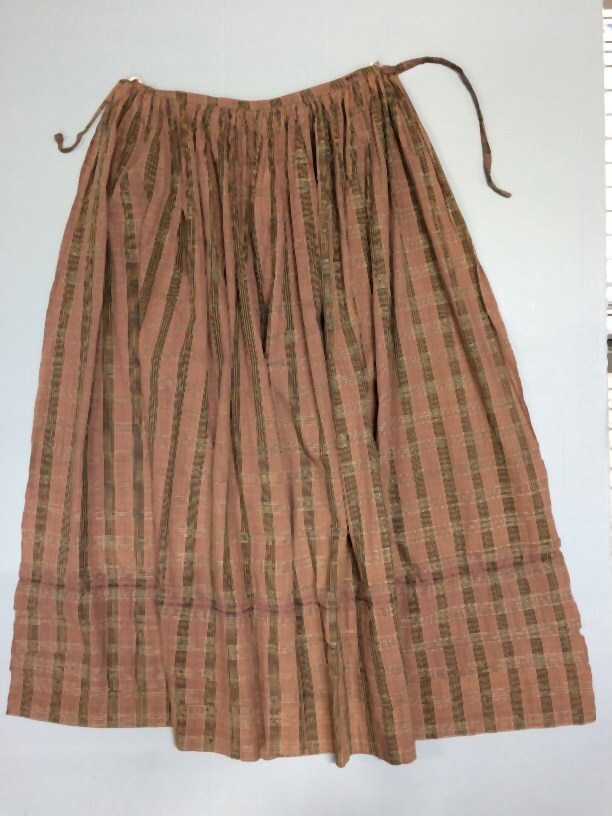 Boezelaar van katoen, bruin, paars met zwart, wit, gele ruit, drie oprijgsels
