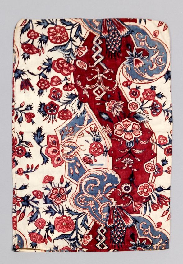 Sitsen sloop met om elkaar slingerende golvende banden met bloempjes op witte grond