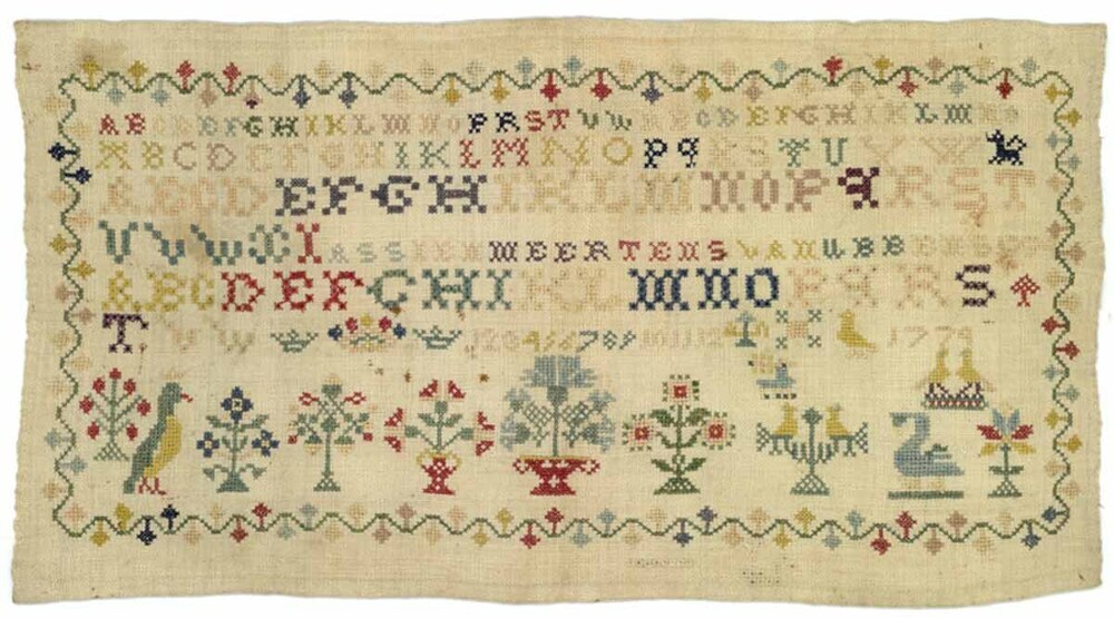 Lettermerkletterlap met rand rondom, gemerkt Assien Meertens van Ubbens 1774
