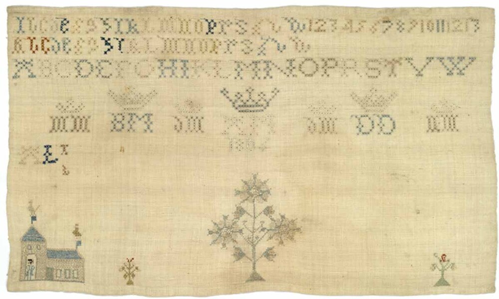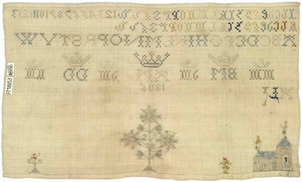 Merkletterlap, onaf met reeks gekroonde initialen, gemerkt A.M. 1806