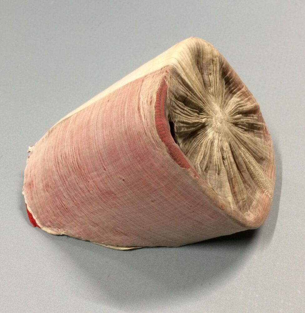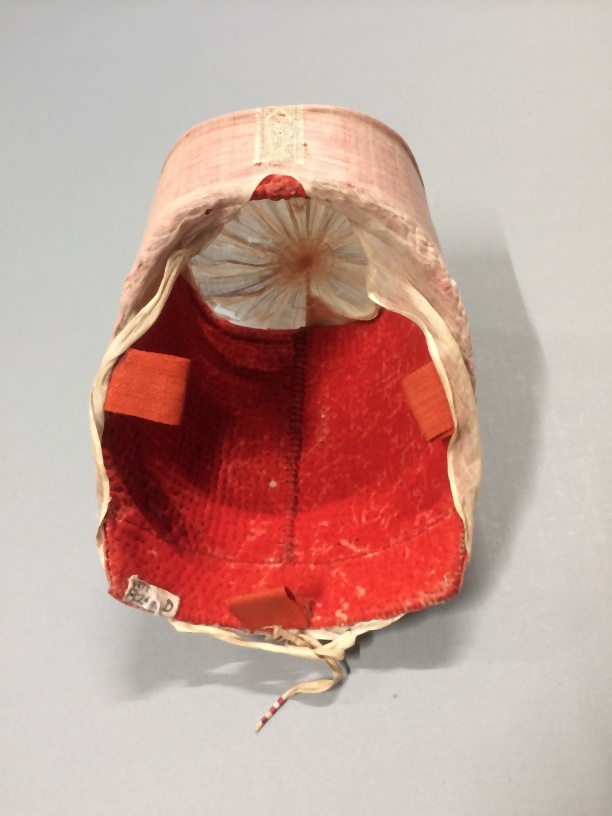 Foarflechter van rood baai met strûpmûtse, onderdeel van Hindelooper vrouwenkostuum