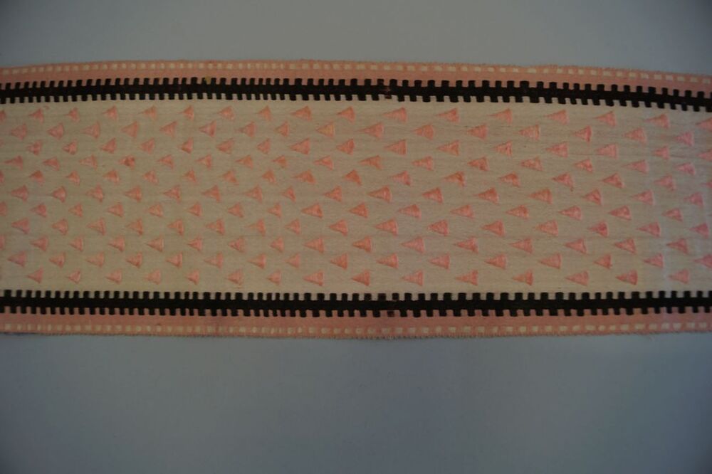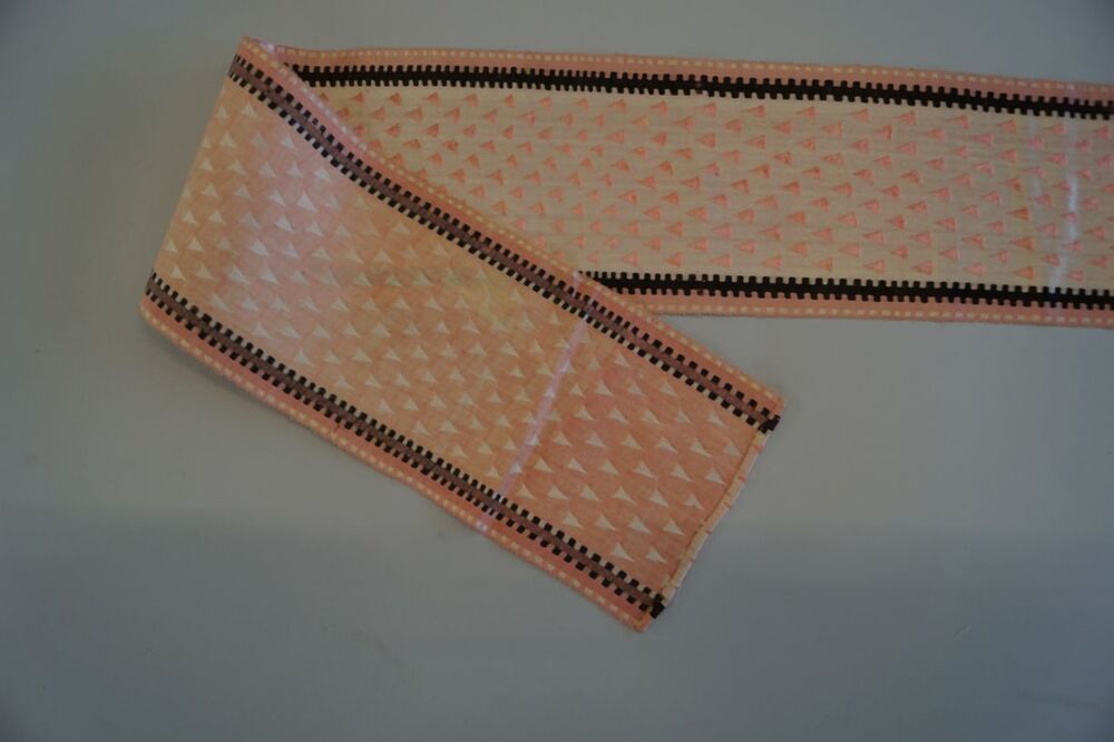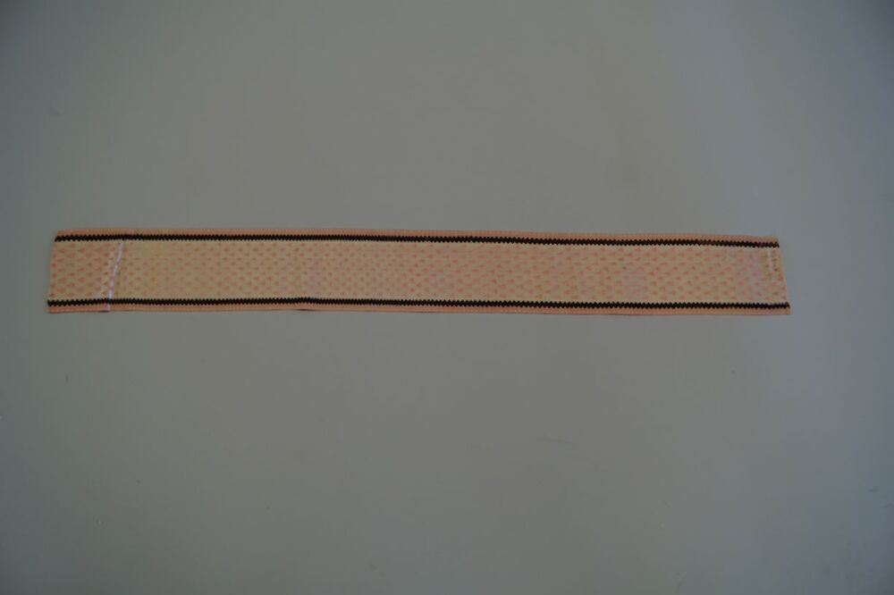 Zijden lint in satijnbinding met roze wit en zwart, onderdeel van Hindelooper vrouwenkostuum