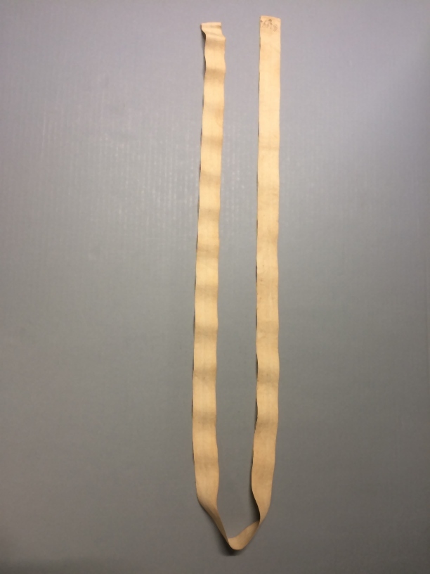 Brede wit linnen band, onderdeel van Hindelooper vrouwenkostuum