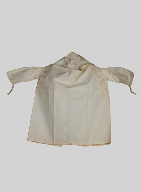 Eenvoudig japonnetje van witte katoen met schapeboutmouw