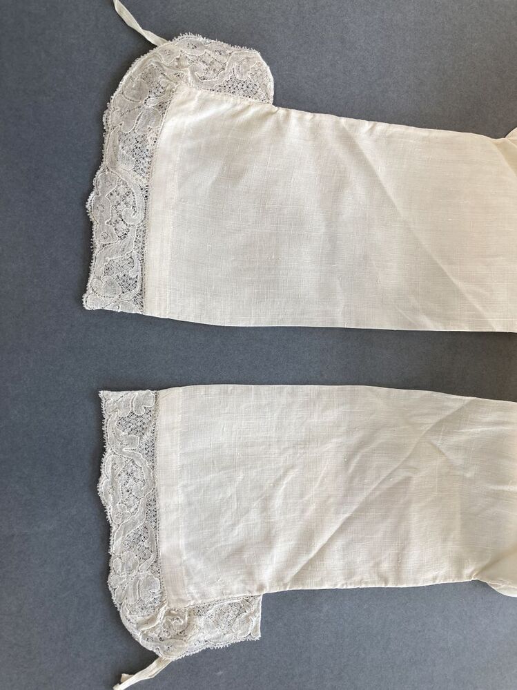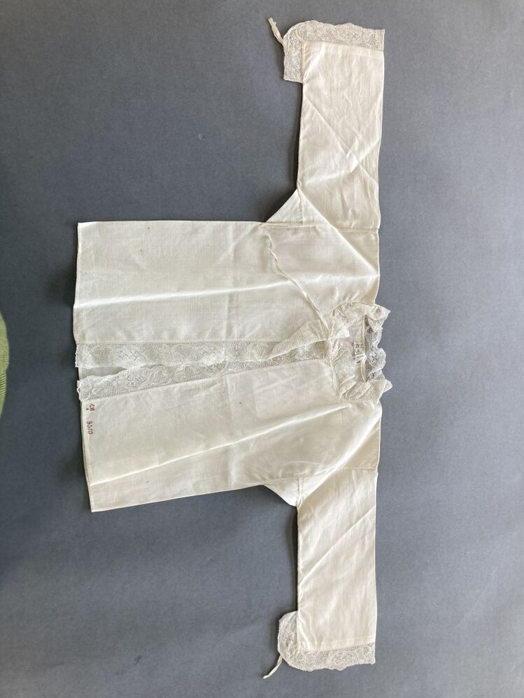 Jongenshemdje van fijn wit linnen afgezet met Mechels kloskant