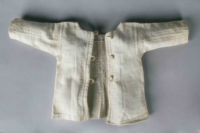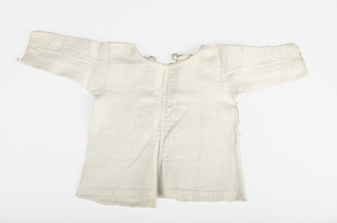 baby-hemd of borstrok met mouwen, gebreid van wit katoen