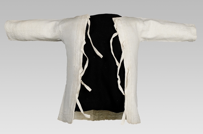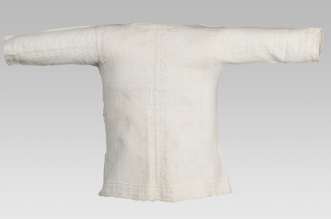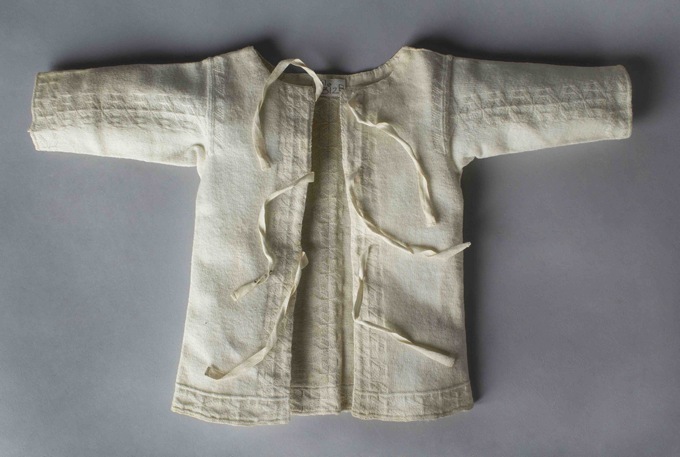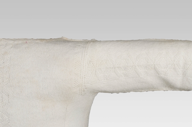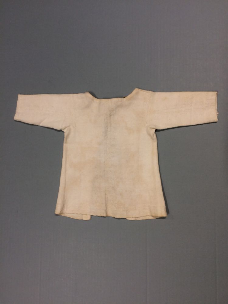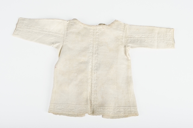 babyhemd of borstrok met mouwen gebreid van wit katoen