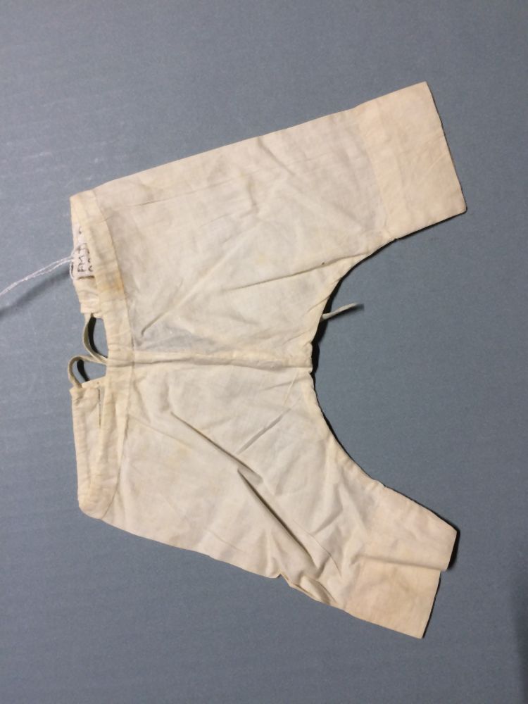 Broek voor de pop van wit linnen, onderdeel van groep van vijf