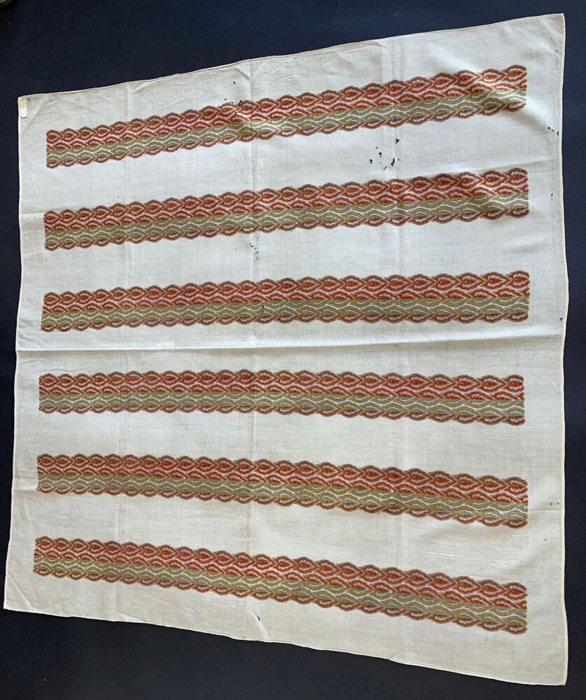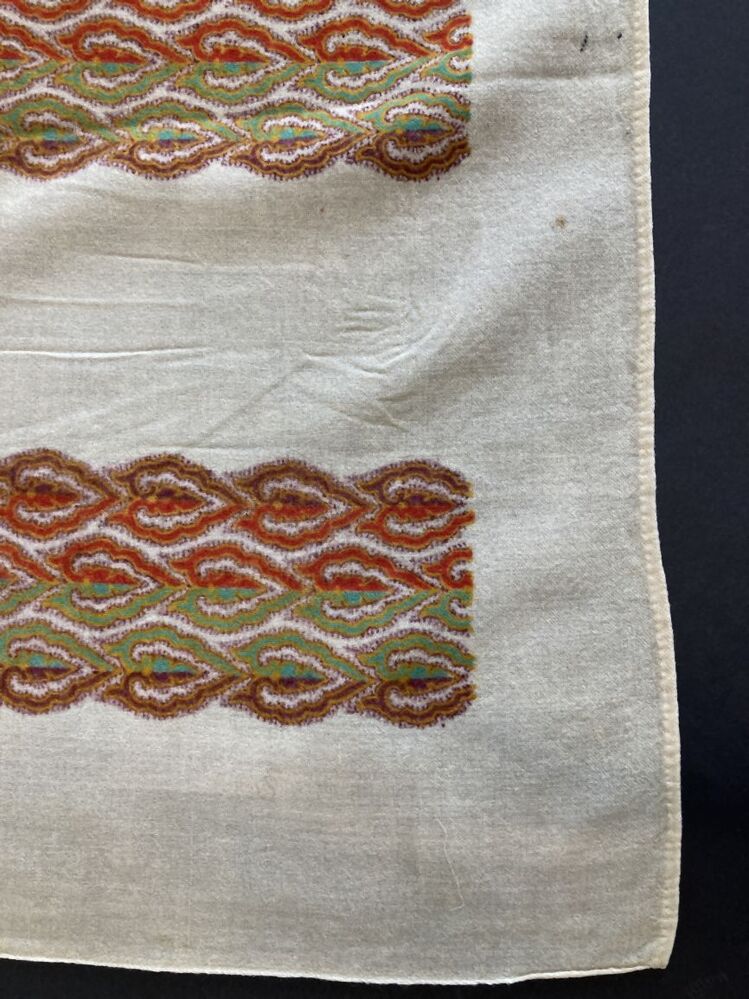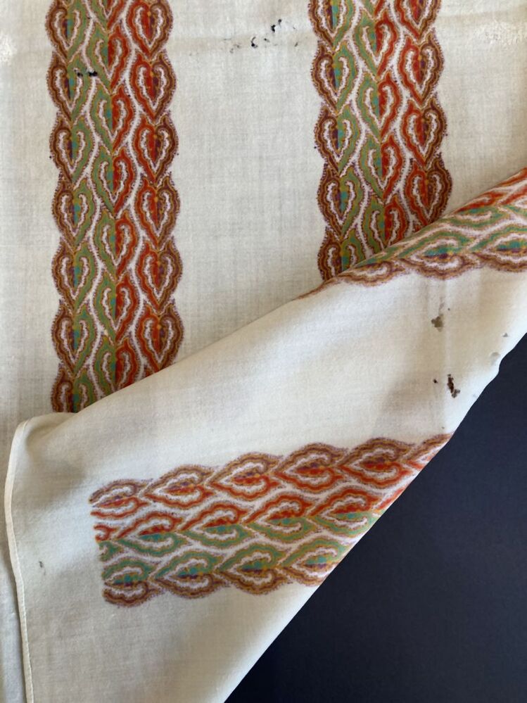 Omslagdoek van wollen mousseline met gekleurde banen in crème, bruin, geel, groen en rood
