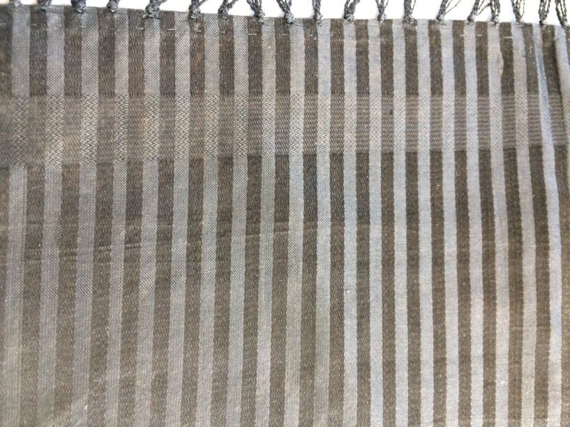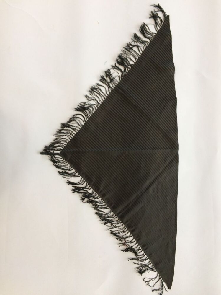 Zwart zijden driekante sjaal geweven in streepjes, met franje