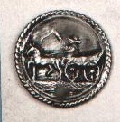Vier platte ronde knopen met achterop een langwerpig oogje, voorp de knopen een boerenwagen met paard en koetsier