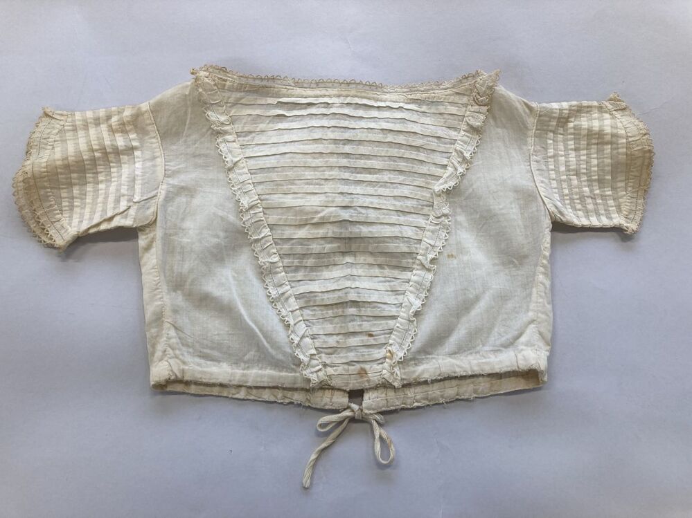 Wit katoenen bovenlijfje met oprijgsels en machinale broderiekant