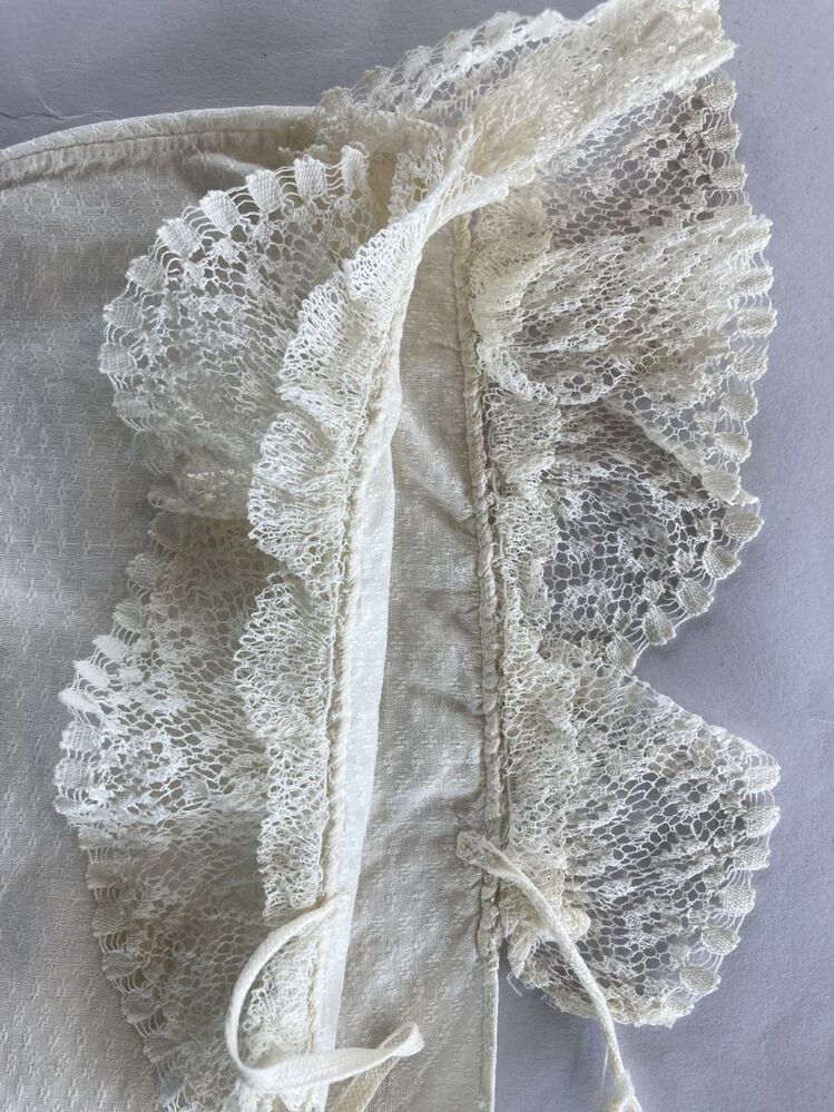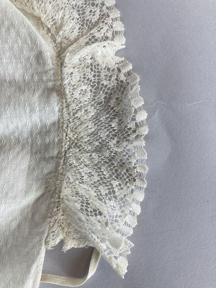 Slaapmuts meisje van katoen met ingeweven oogjes met lange slippen en kantstrook