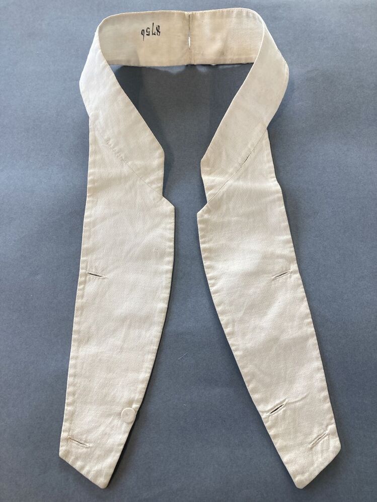 Inknoopbare kraag van wit gewafeld katoen met opstaande boord, suggereert een vestje met opstaande kraag