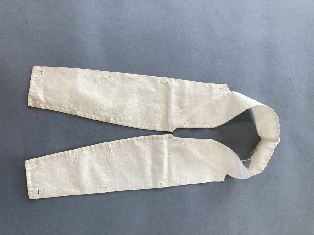 Inknoopbare kraag van wit gewafeld katoen met opstaande boord, suggereert een vestje met opstaande kraag