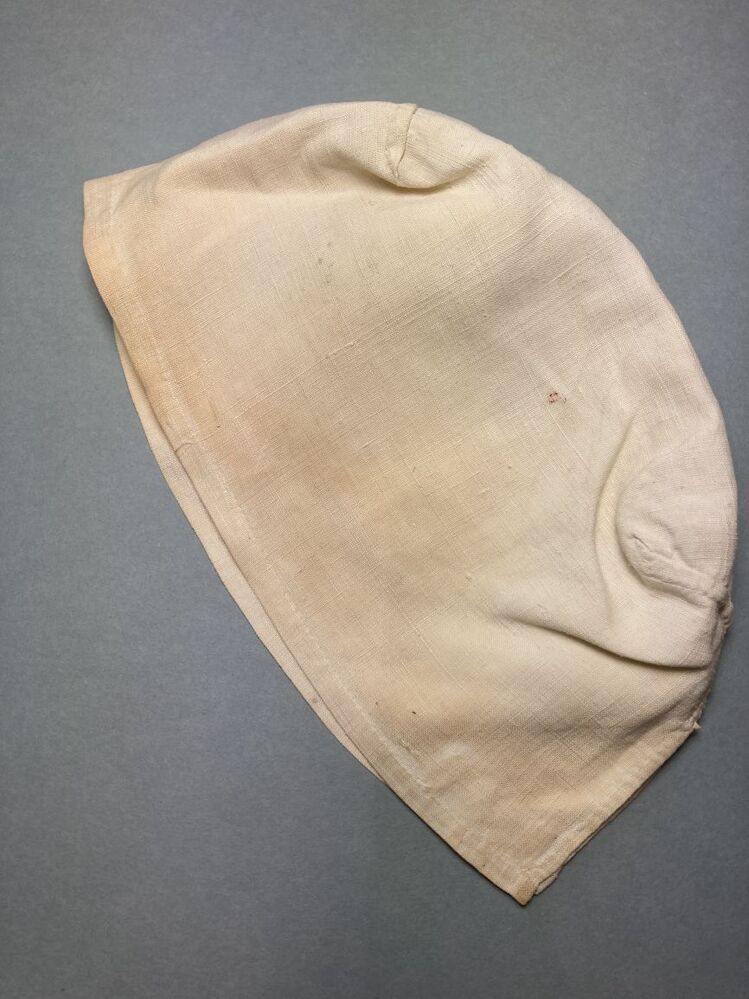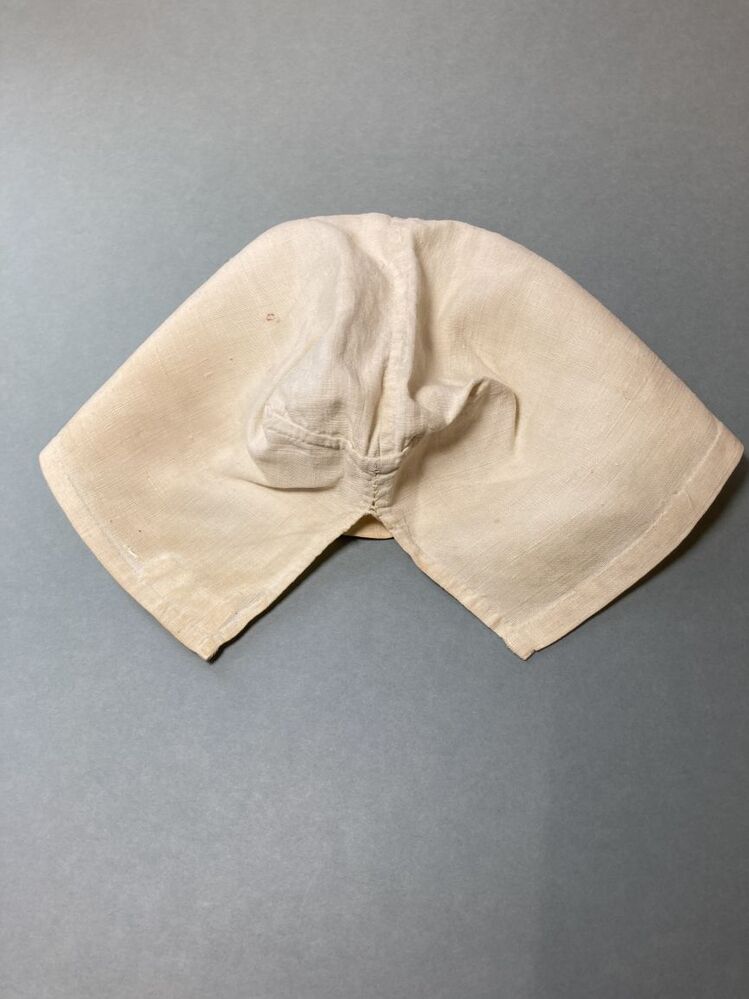 Hindelooper ondermuts van wit linnen ,