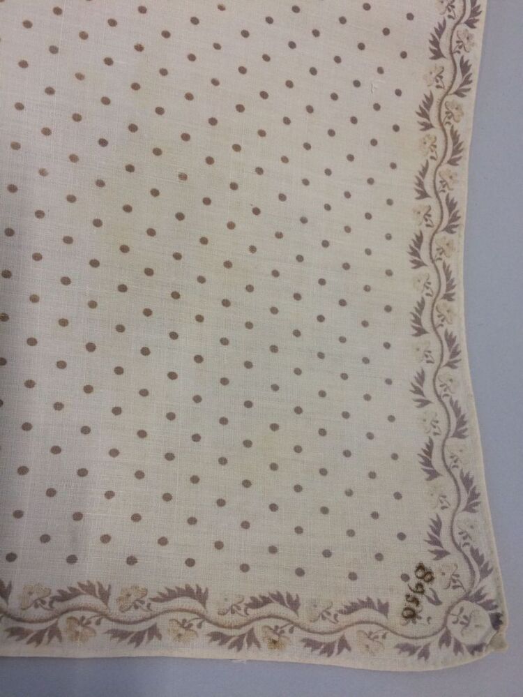 Vierkante bedrukt katoenen doek of sjaal met gestipt mddenveld en smalle rand in beigetinten