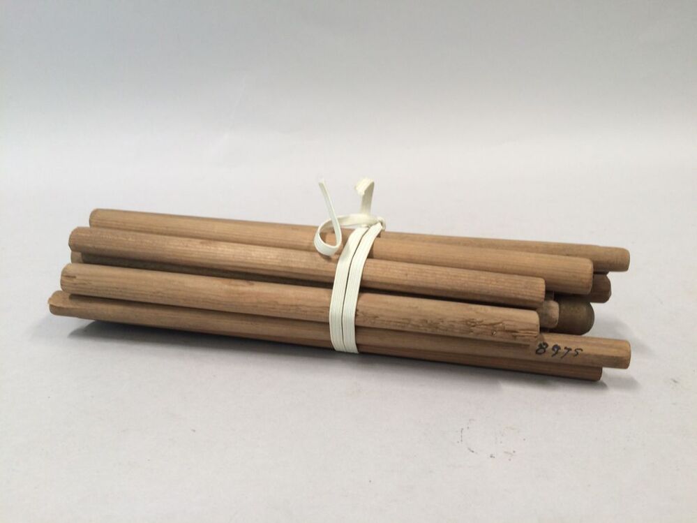17 Mutsenspanhoutjes, onderdeel van beschilderd houten bakje met mutsenspanner en mutsenspanhoutjes