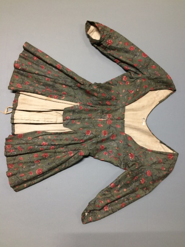 Sitsen vrouwenjak, met slingerende ranken met bloemetjes op groene grond