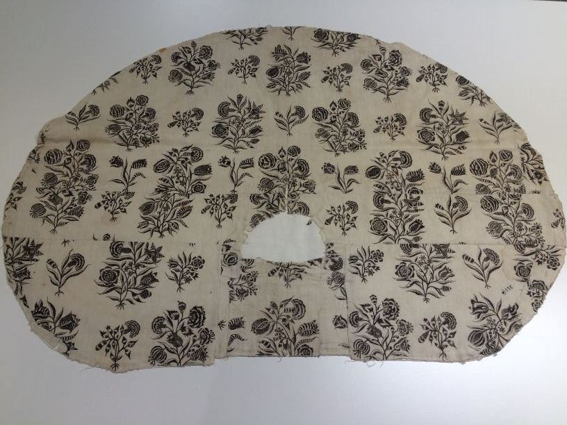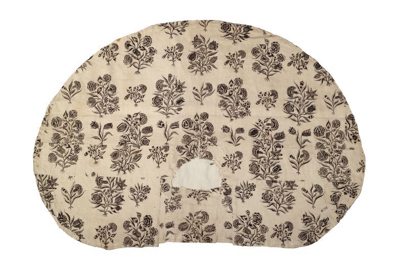 Sitsen zonhoedvoering, beschilderd met grote en kleine losstaande plantjes op witte grond