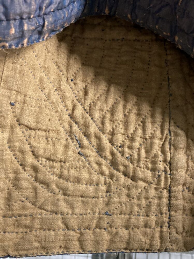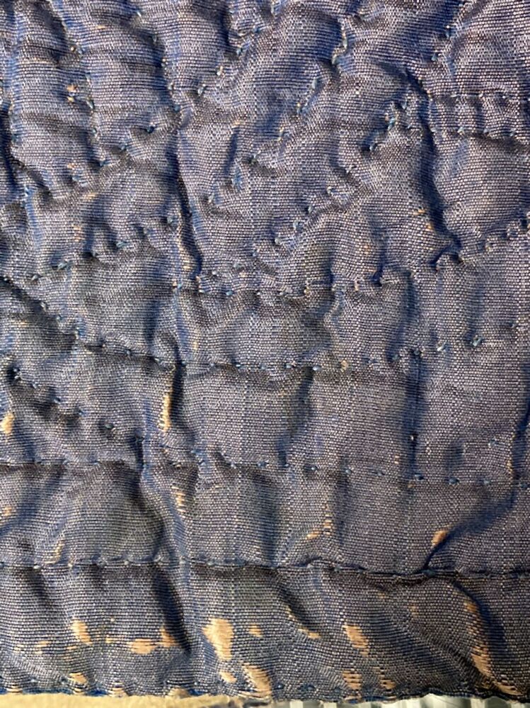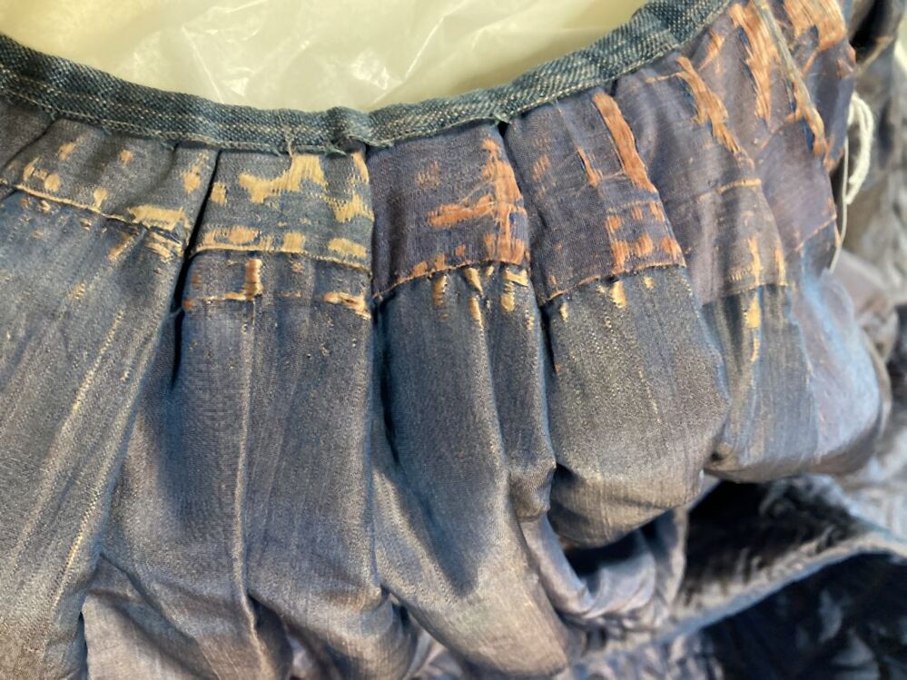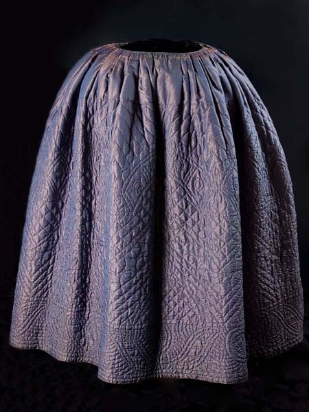 Blauw paars, lichtbruin changeant zijden rok met matelassé