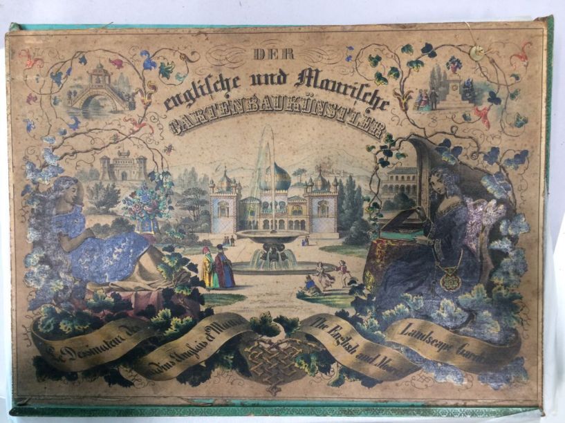 Blokkendoos met blokken en zetstukken, genaamd Der englische und Maurische Gartenbaukünstler