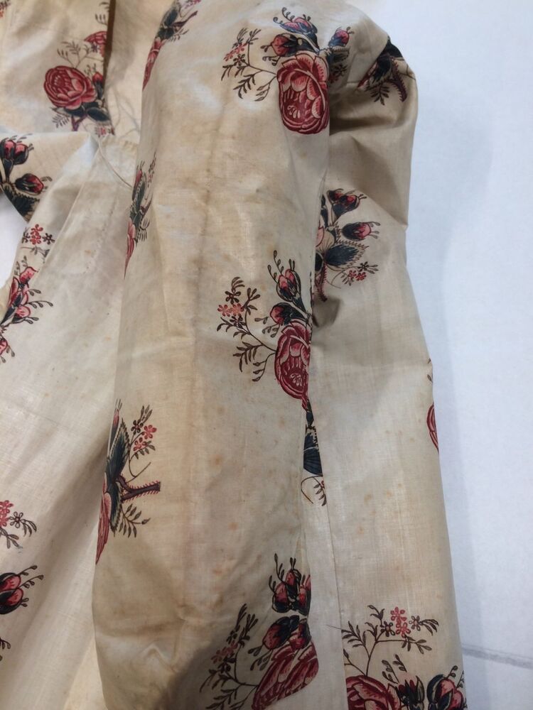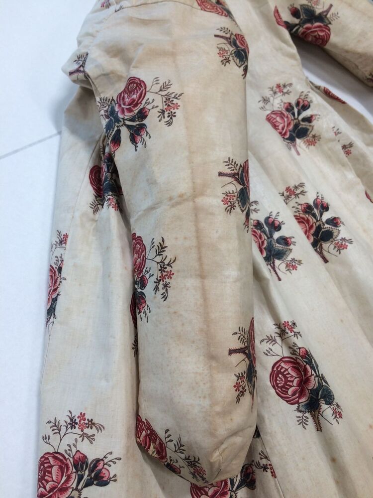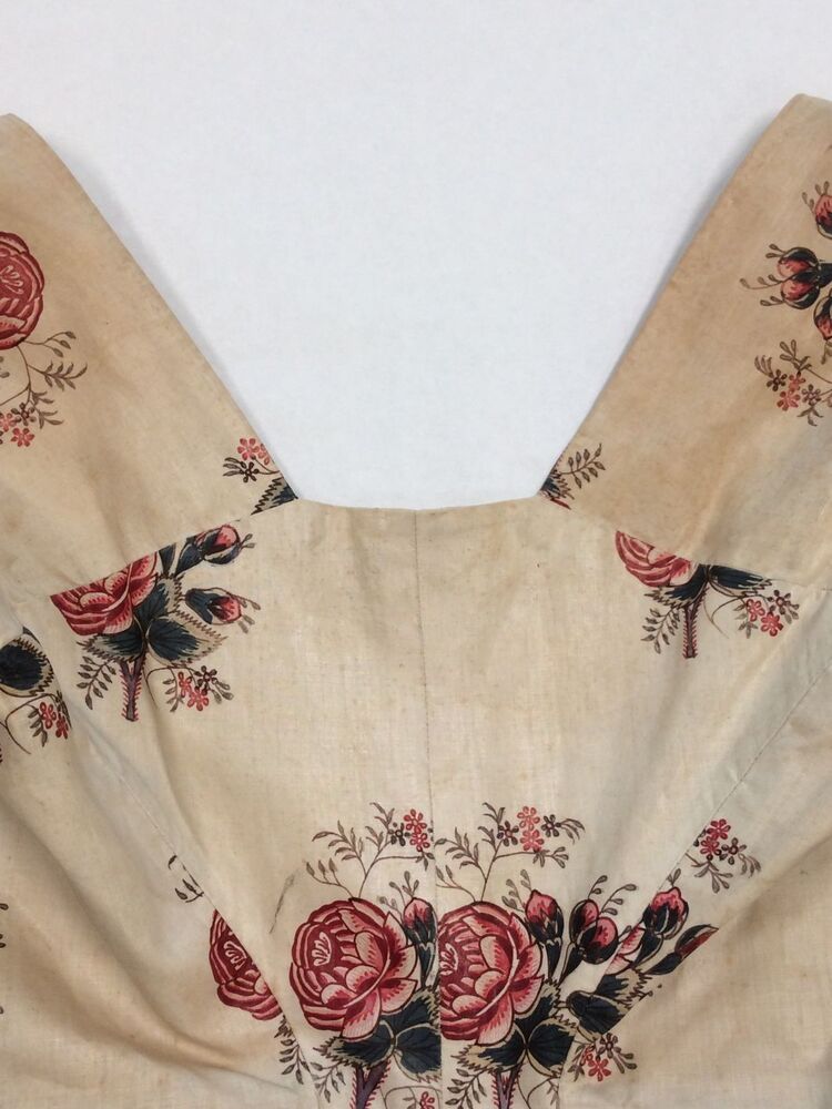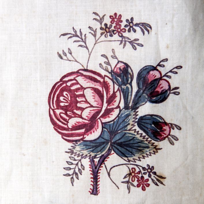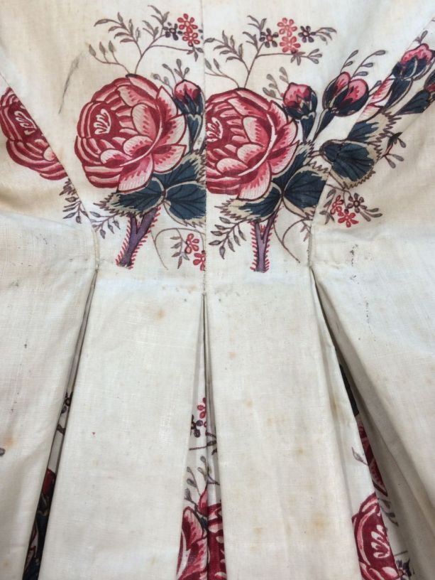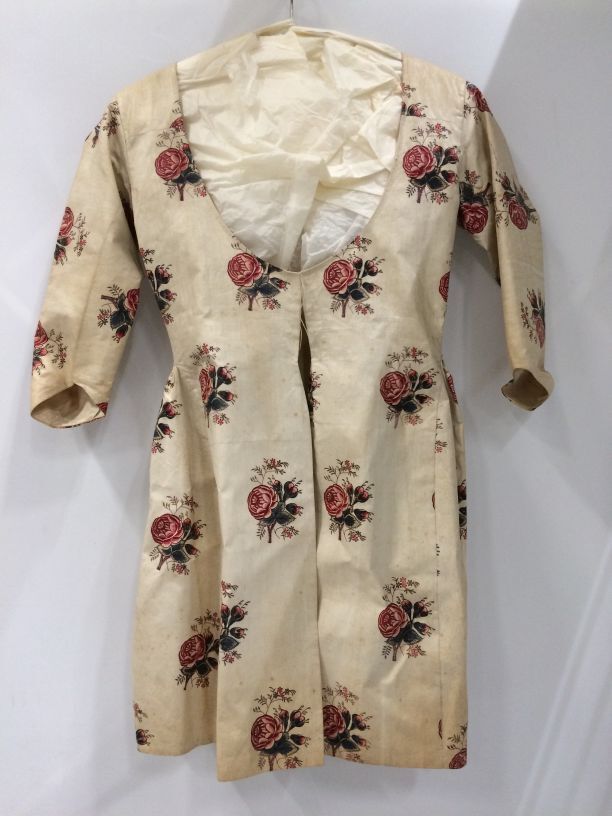 Sitsen vrouwenjak, beschilderd met losse roosmotieven op witte grond