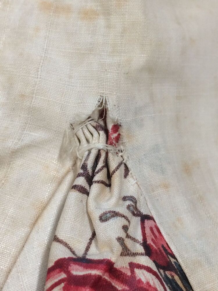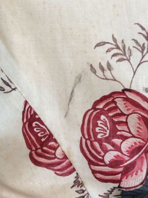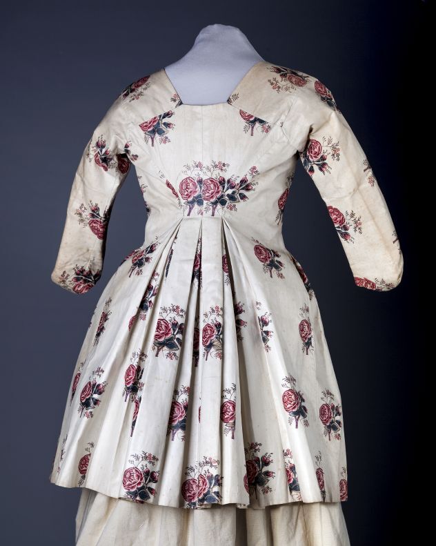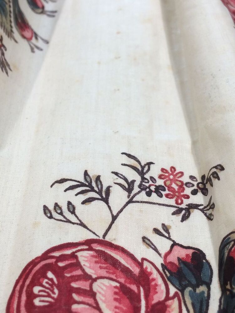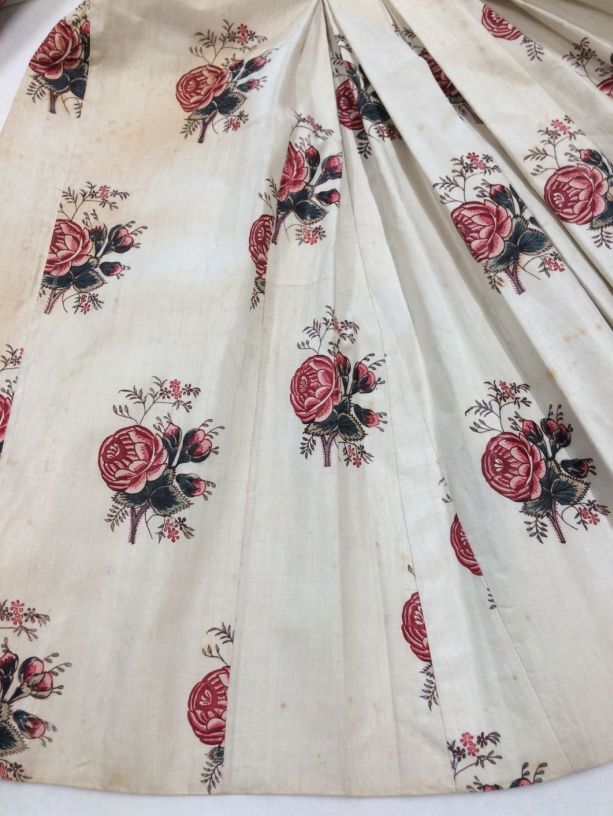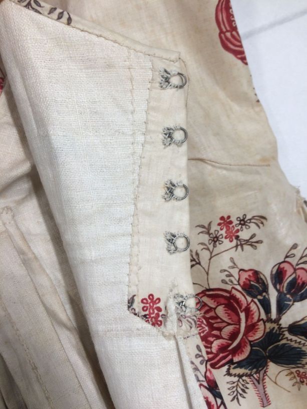 Sitsen vrouwenjak, beschilderd met losse roosmotieven op witte grond