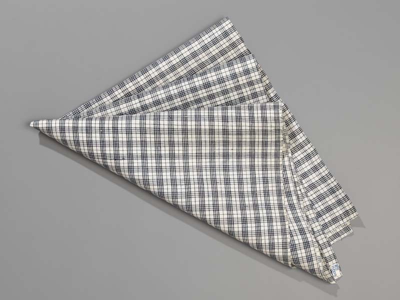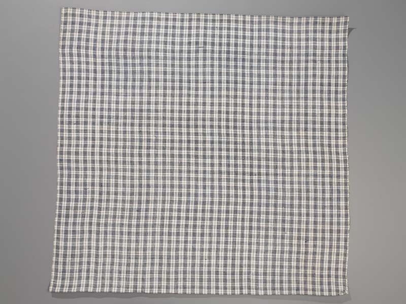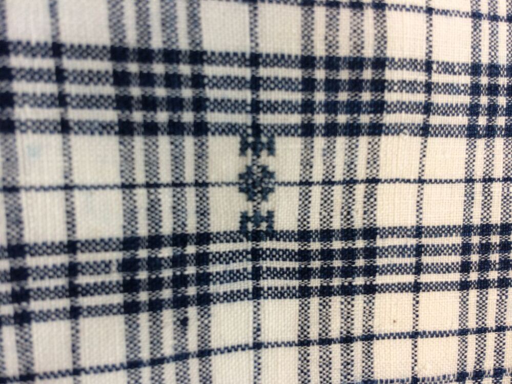 Hindelooper sondook voor de rouw met ingeweven ruit in wit en blauw en initialen IE