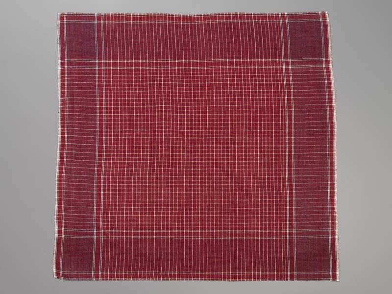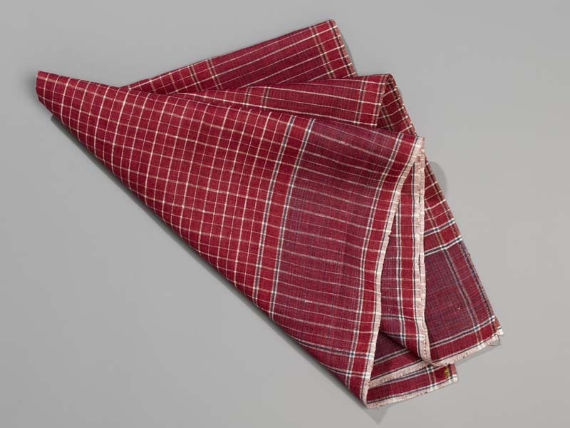 Sondook met ingeweven ruit in rood,wit en blauw met lapkede mei klawerblede