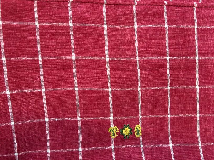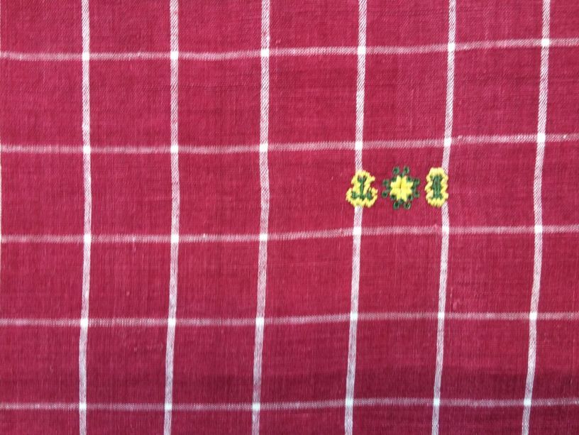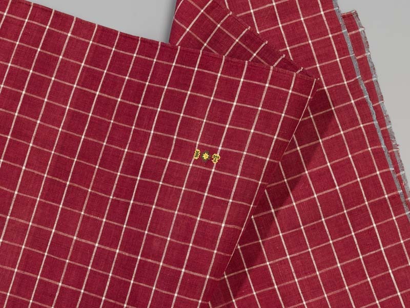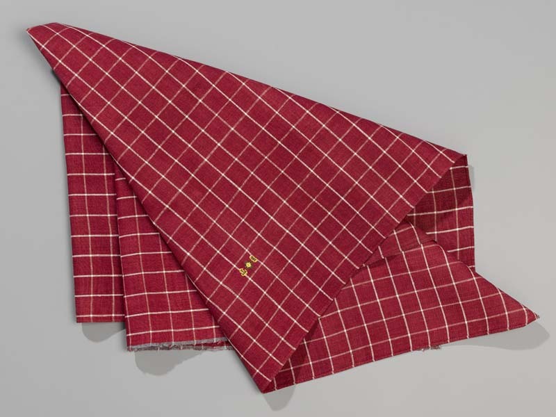 Hindelooper sondook met ingeweven ruit in rood en wit van het staal staal 'Vlielander rae' en initialen IT