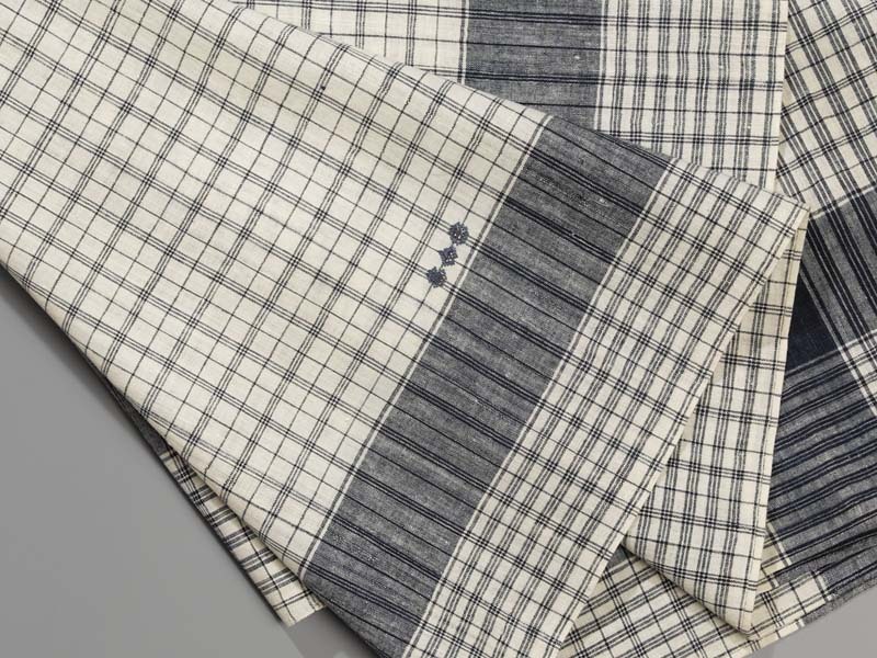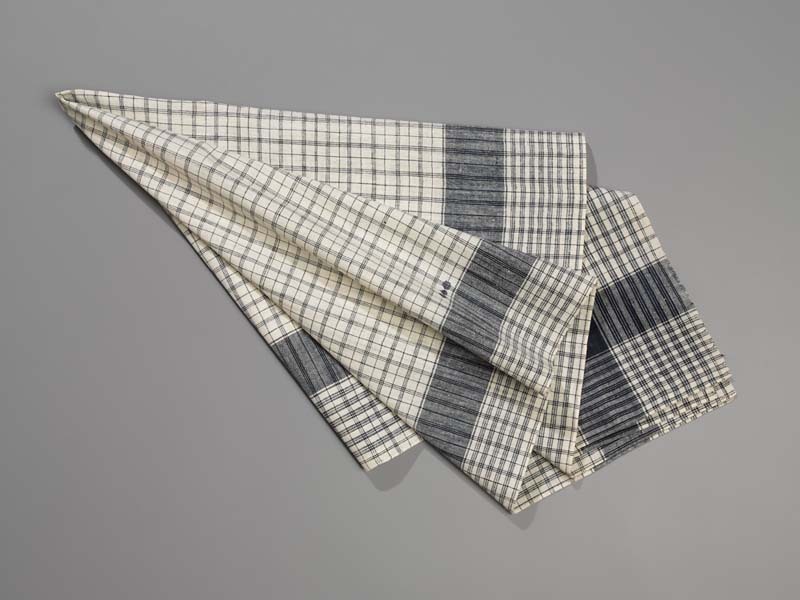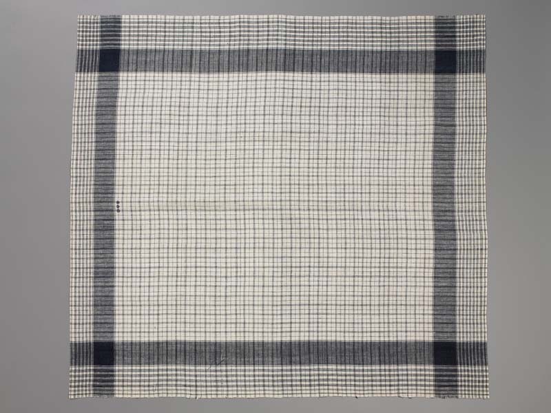 Hindelooper sondook voor lichte rouw met ingeweven ruit in wit en blauw en lapkede ( ingeweven rand) met bokkede (bliek bokkede) en initialen B, hart en T