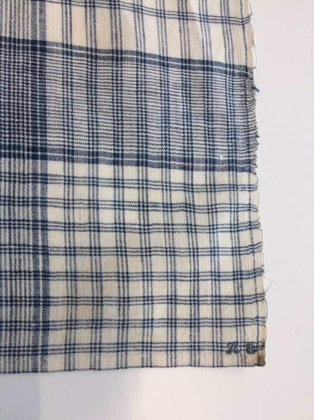 Hindelooper sSondook met ingeweven ruit met rand rondom in wit en blauw en met initialen AL,
