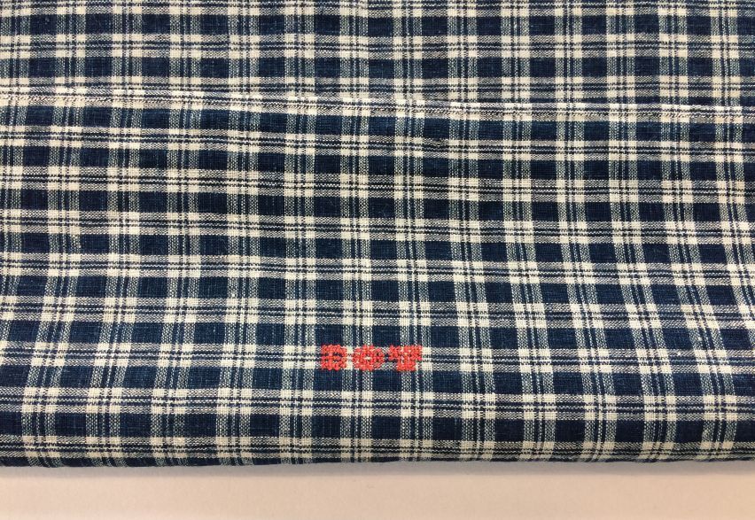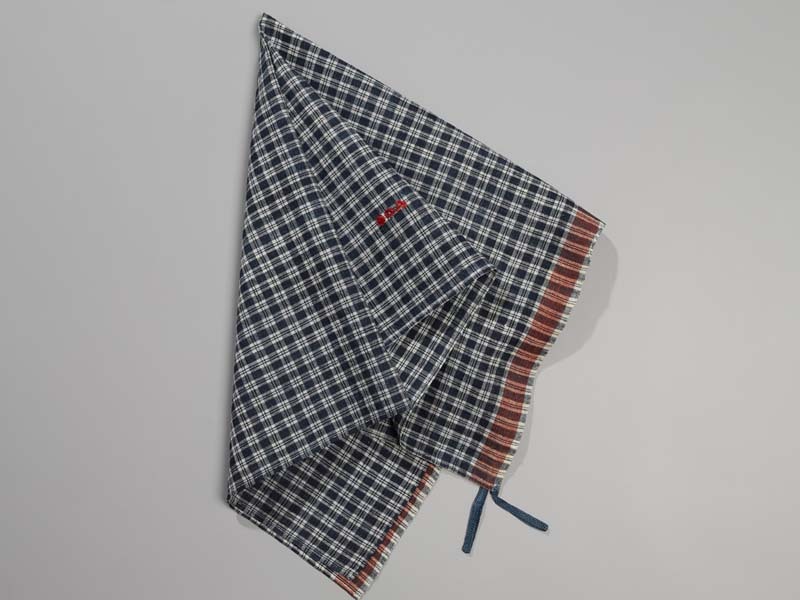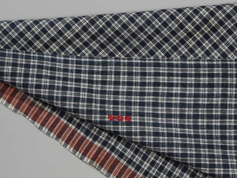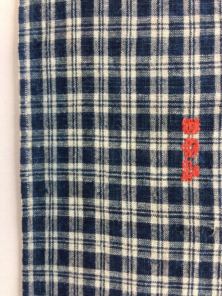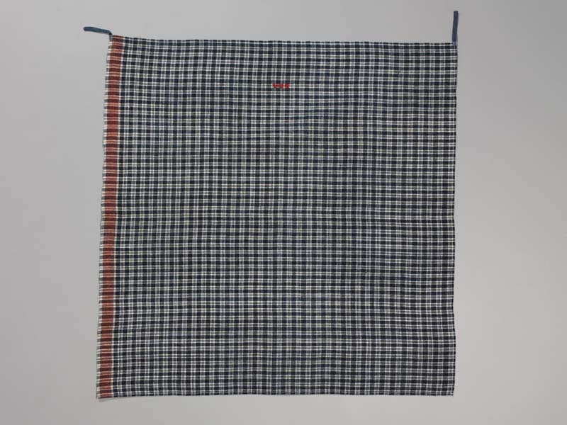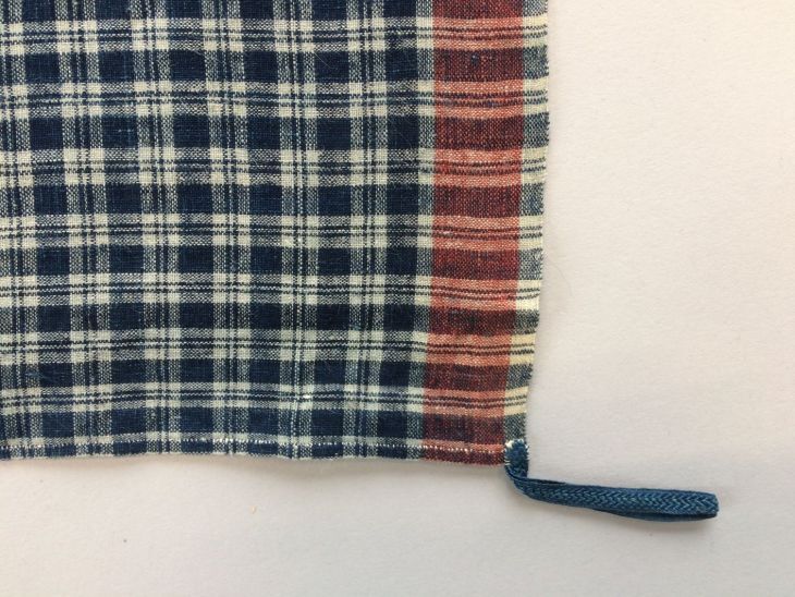 Hindelooper doek met ingeweven ruit in blauw, wit en rood met initialen ET