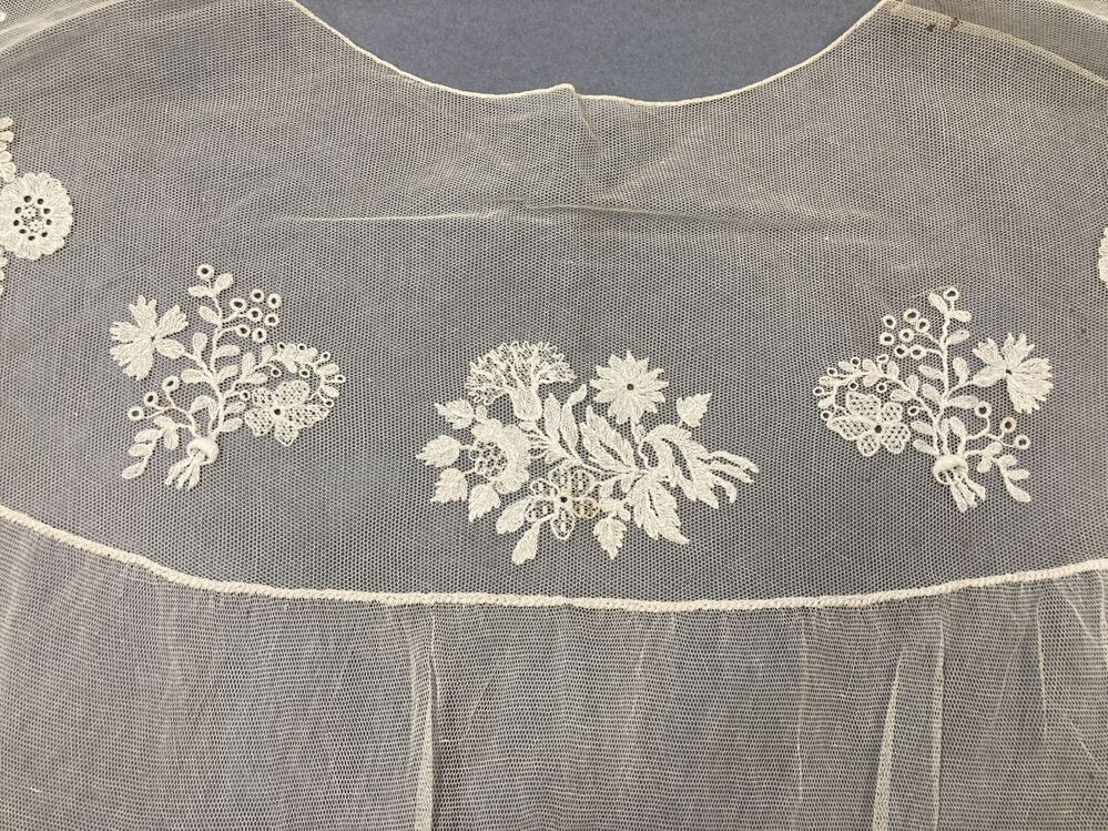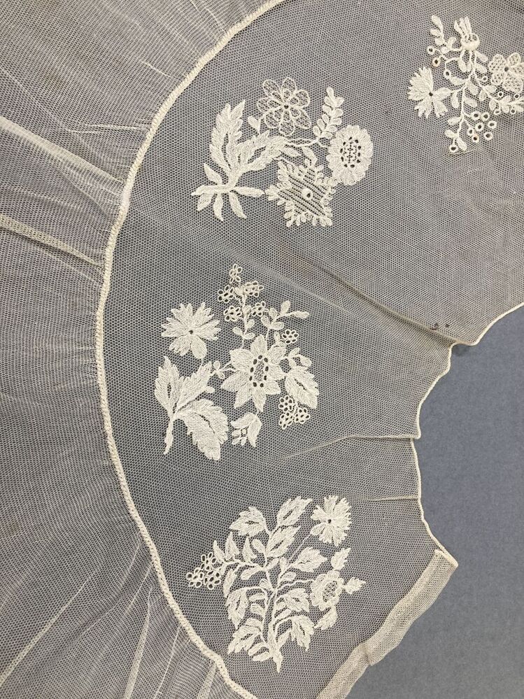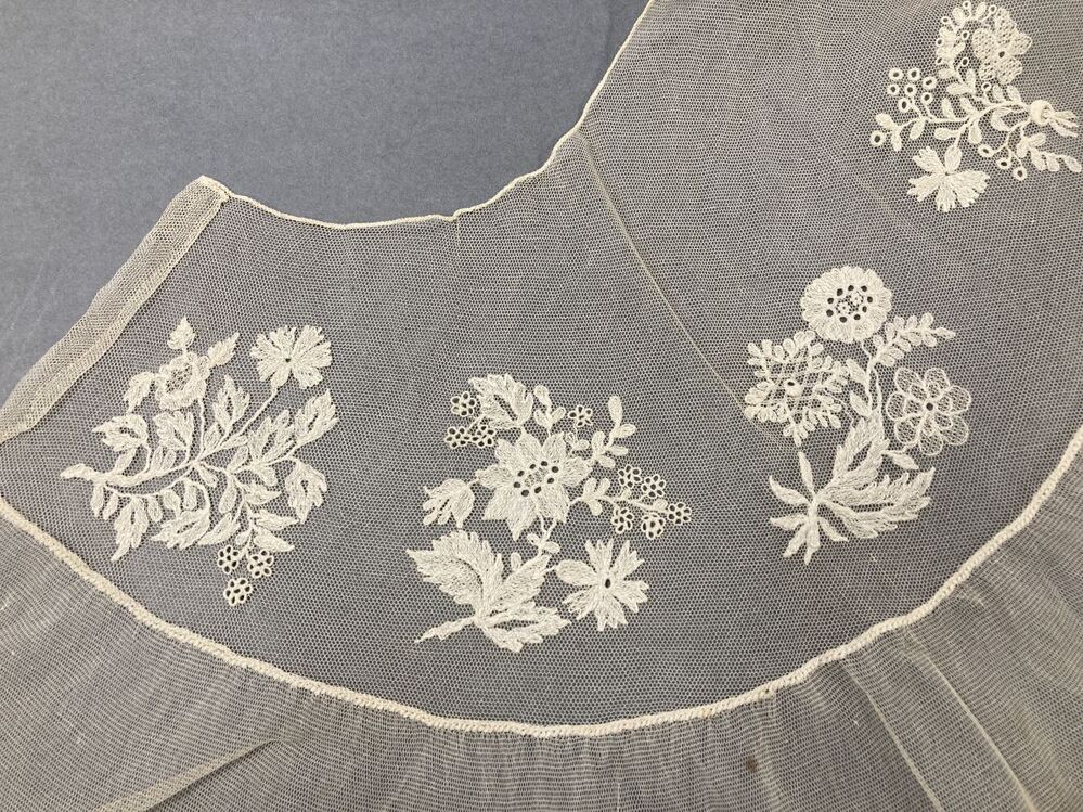 Grote Biedermeier kraag van tule met bloemen in doorstopwerk