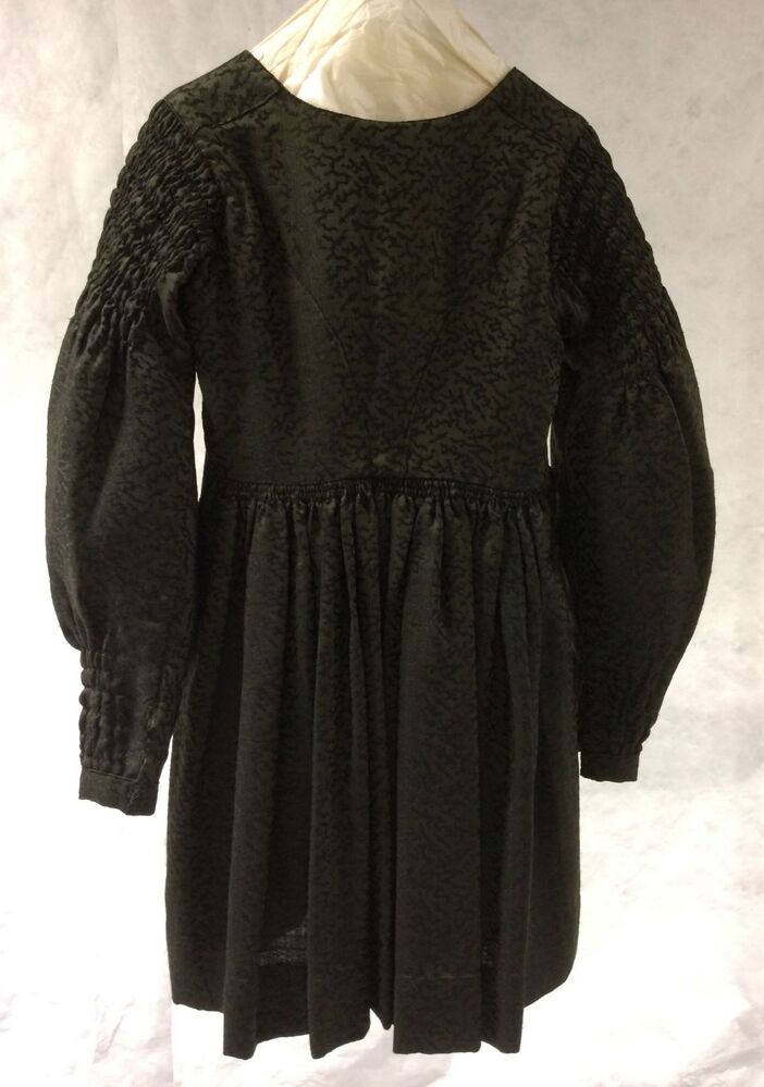 Kostuumjak van groen zwart wollen jacquardweefsel met schapeboutmouw, verhoogde taille en lange schoot