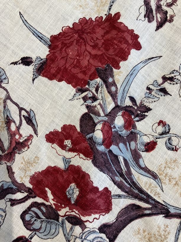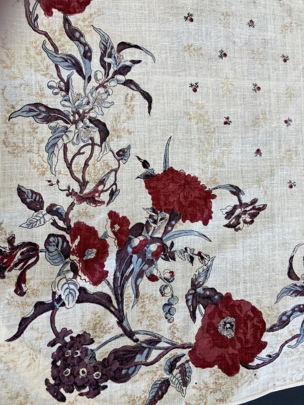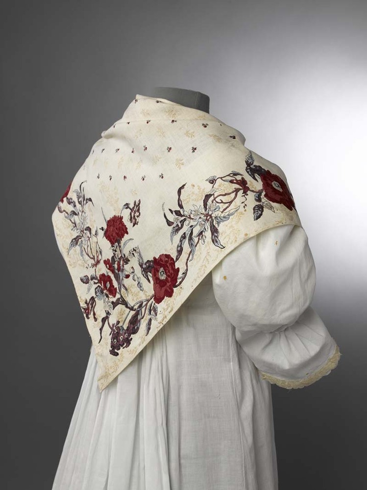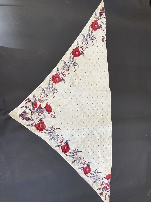 Tipdoek van bedrukt katoen in sitstechniek, met brede rand golvende rozentakken