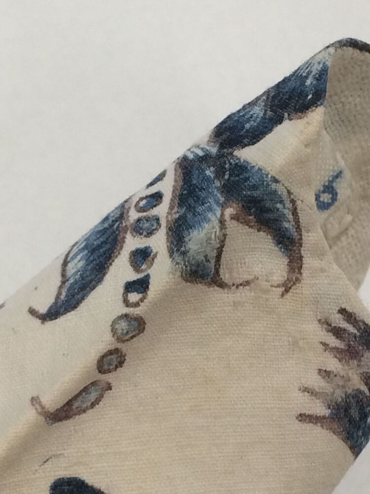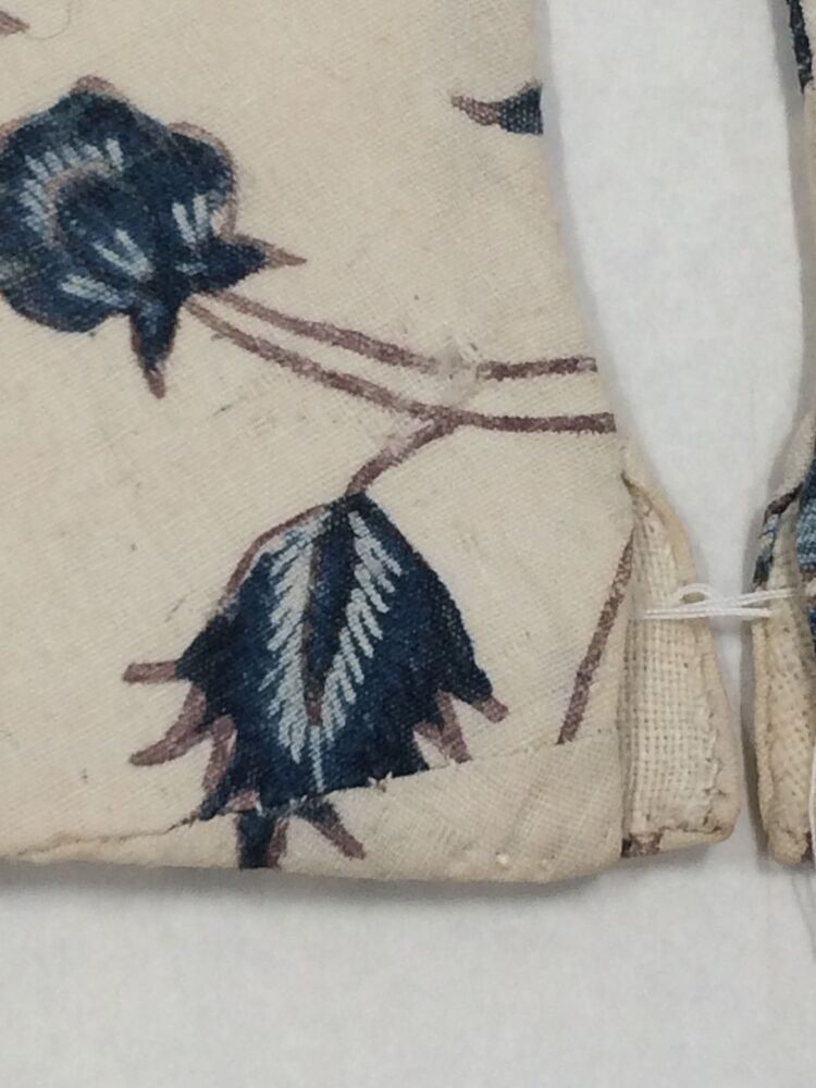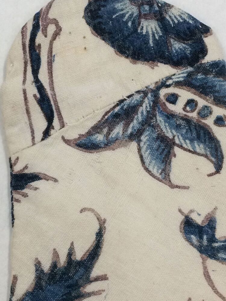 Sitsen kindermofjes of mitaines, met blauwe bloemrank op witte grond