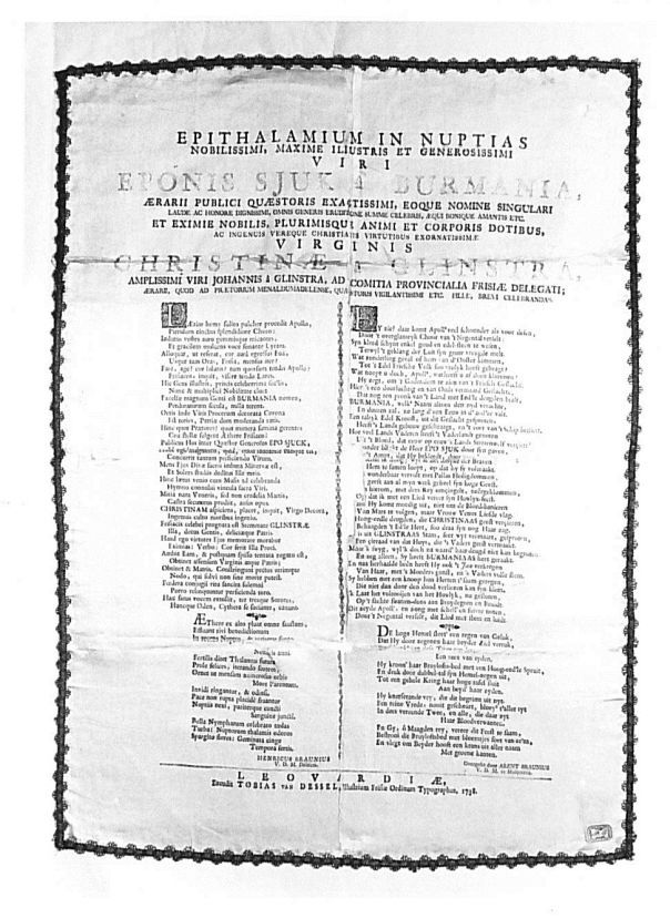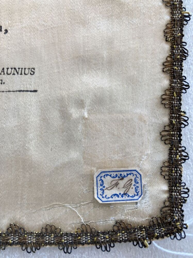 Gedenkdoek van écru zijde-satijn, Eponis Sjuk â Burmania en Christina â Glinstra
