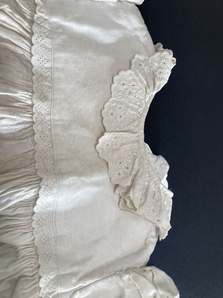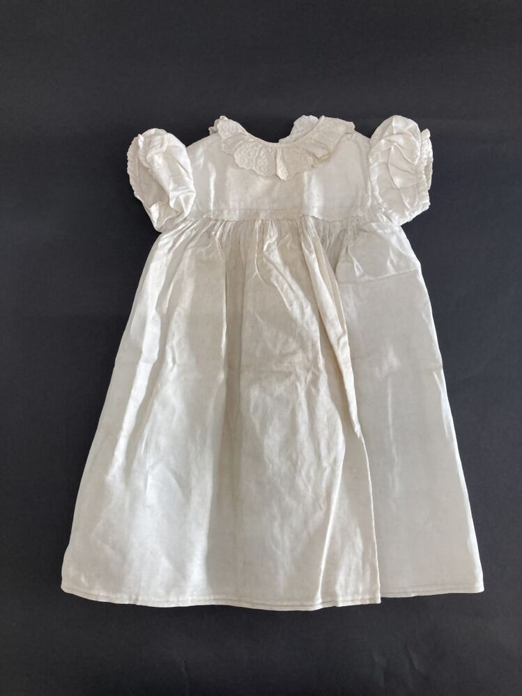 hangjurkje voor meisje met pofmouwtjes van wit gedessineerd katoen met broderie