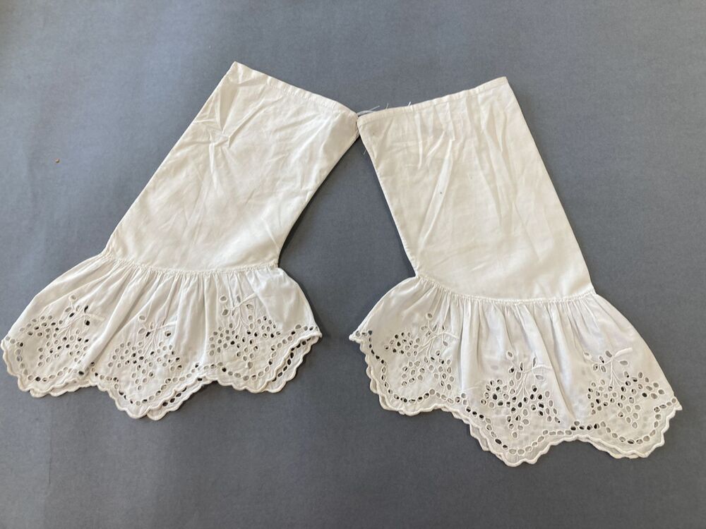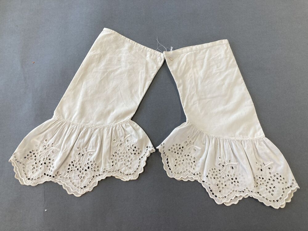 Paar mouwen van wit katoen met ajour bewerkte breed uitlopende lubben of engageantes