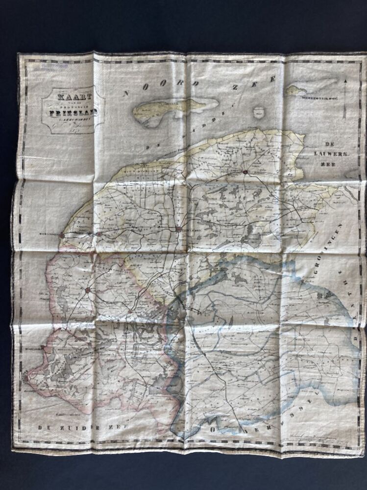 Kaart van Friesland, gedrukt op katoen, in geel gemarmerd etui, bij G.T.N. Suringar 1847