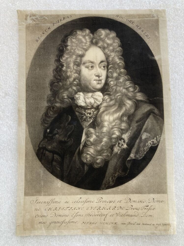 Portret van Christian Everhard, prins van Oost Friesland, Mezzotint op zijde
