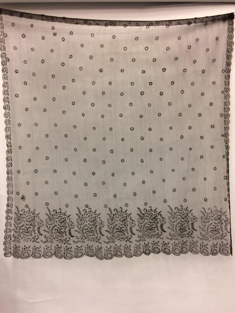 Verwijst naar werken die zich kenmerken door een patroon of ontwerp dat is uitgevoerd in met draad of fijn metaaldraad gemaakte steken. De patronen worden gewoonlijk uitgevoerd op stof, maar ook leer, papier of andere media kunnen worden gebruikt; de werken kunnen bedoeld zijn om ingelijst te worden of om kleding, bedtextiel, meubelbekleding, kussens, altaarkleden, ceremoniële voorhangen of andere zaken te versieren. (AAT)