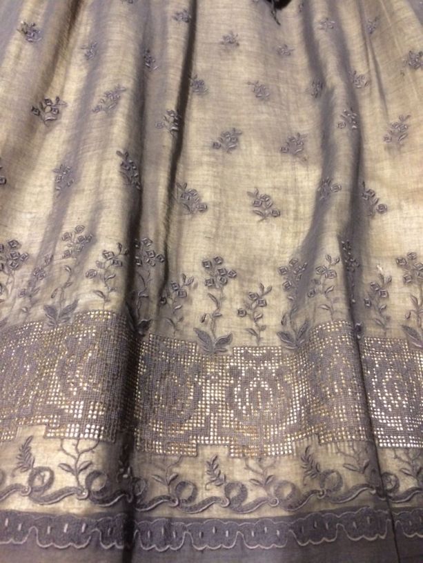 Verwijst naar werken die zich kenmerken door een patroon of ontwerp dat is uitgevoerd in met draad of fijn metaaldraad gemaakte steken. De patronen worden gewoonlijk uitgevoerd op stof, maar ook leer, papier of andere media kunnen worden gebruikt; de werken kunnen bedoeld zijn om ingelijst te worden of om kleding, bedtextiel, meubelbekleding, kussens, altaarkleden, ceremoniële voorhangen of andere zaken te versieren. (AAT)