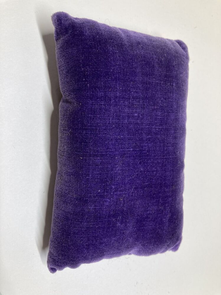 Paars fluwelen kussentje om zijden hoed mee te borstelen