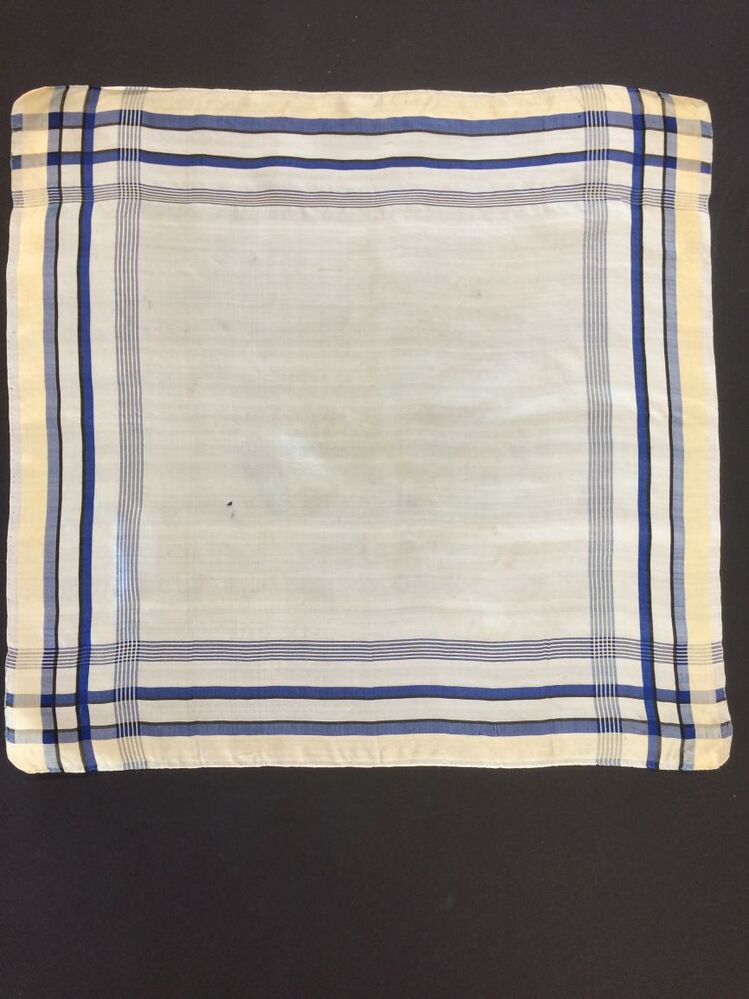 Sjaaltje van crème zijde met blauwgestreepte randen in satijnbinding