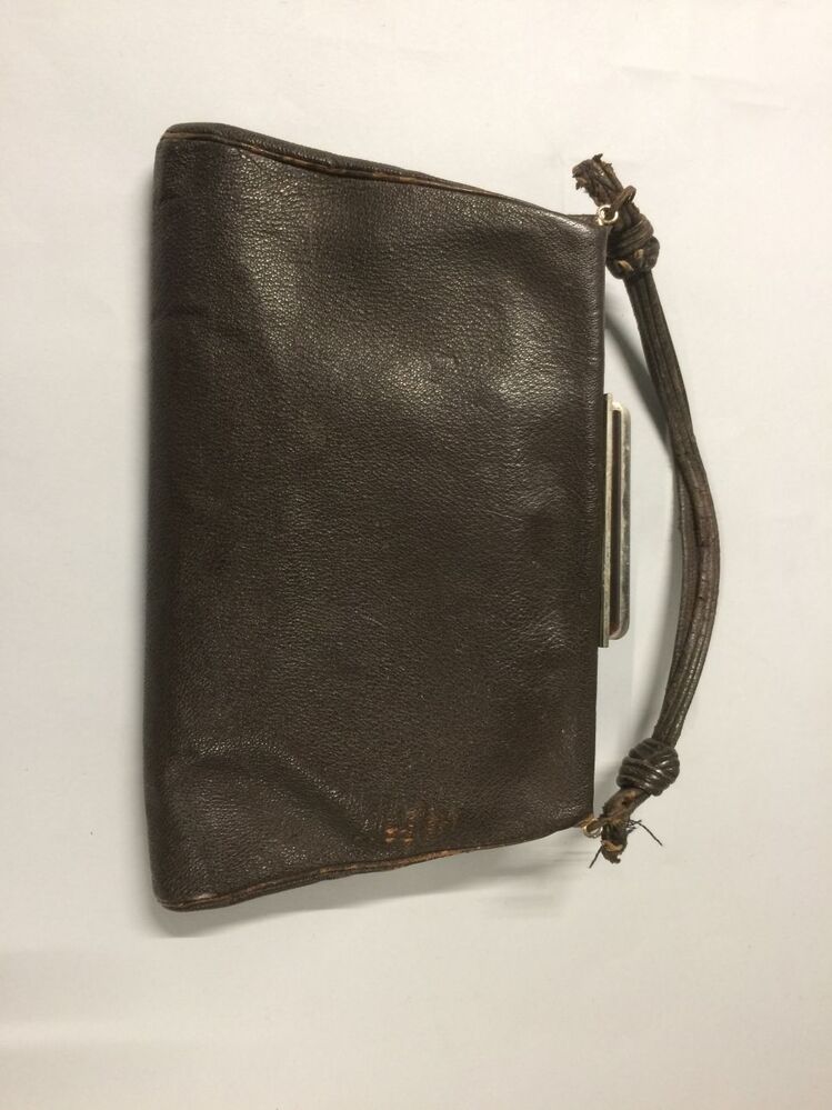 Trapeziumvormig tasje met grote knip en handvat met knopen