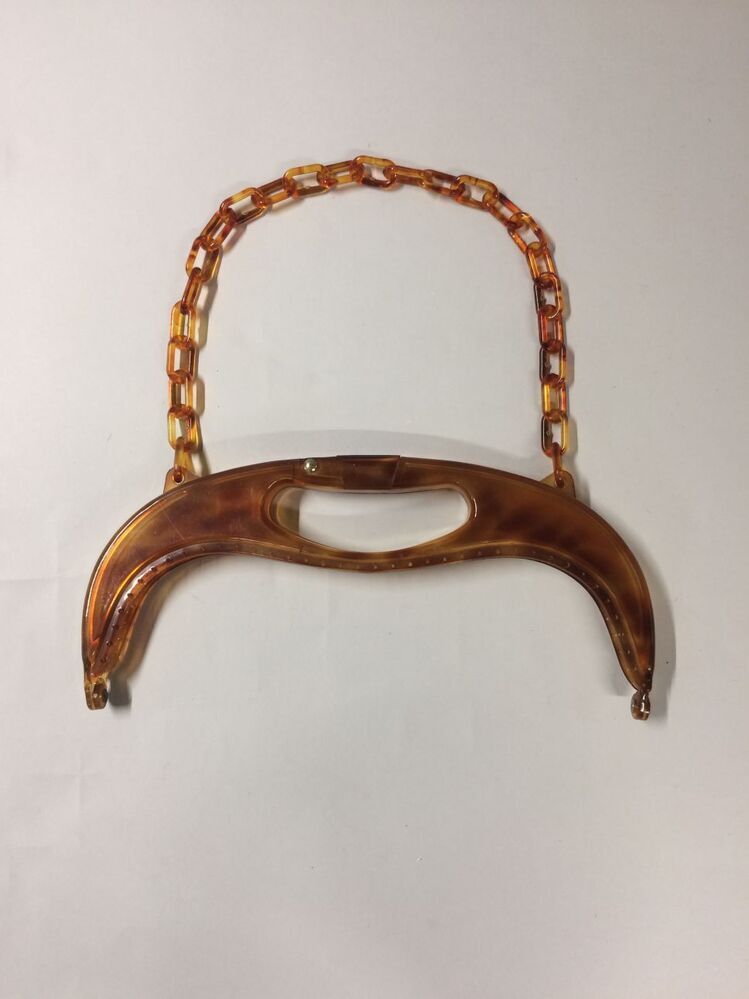 Kunststof beugel voor handtas, imitatie schildpad, met handgreep en ketting