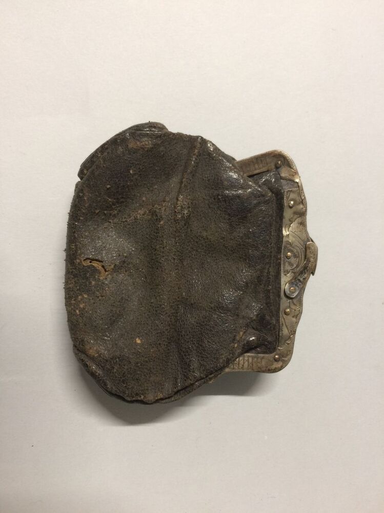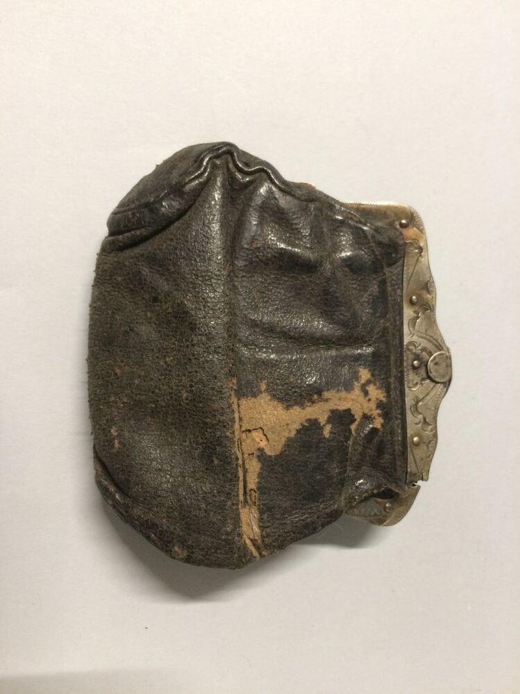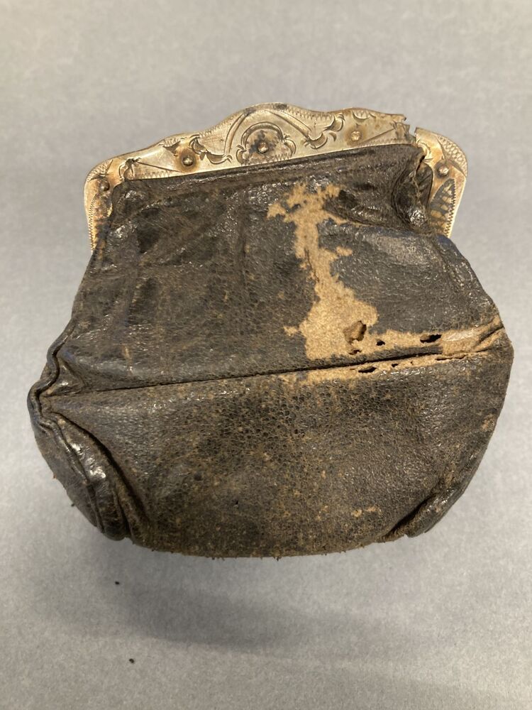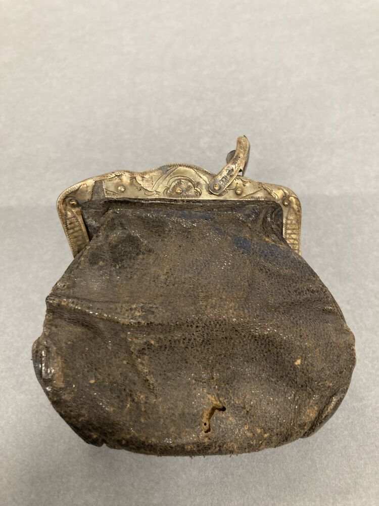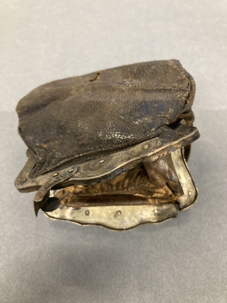 Leren beursje met gegraveerde knipbeugel van zilver